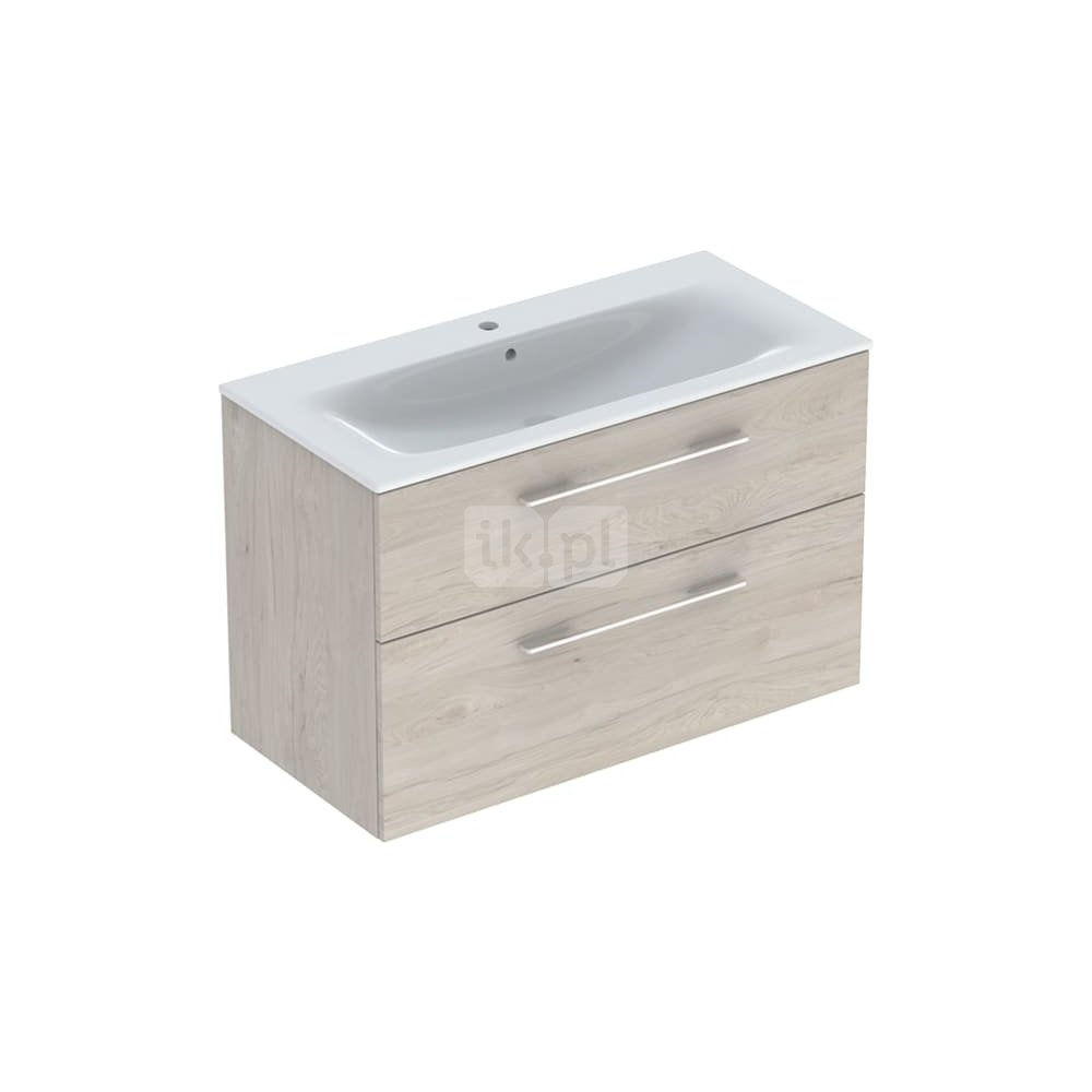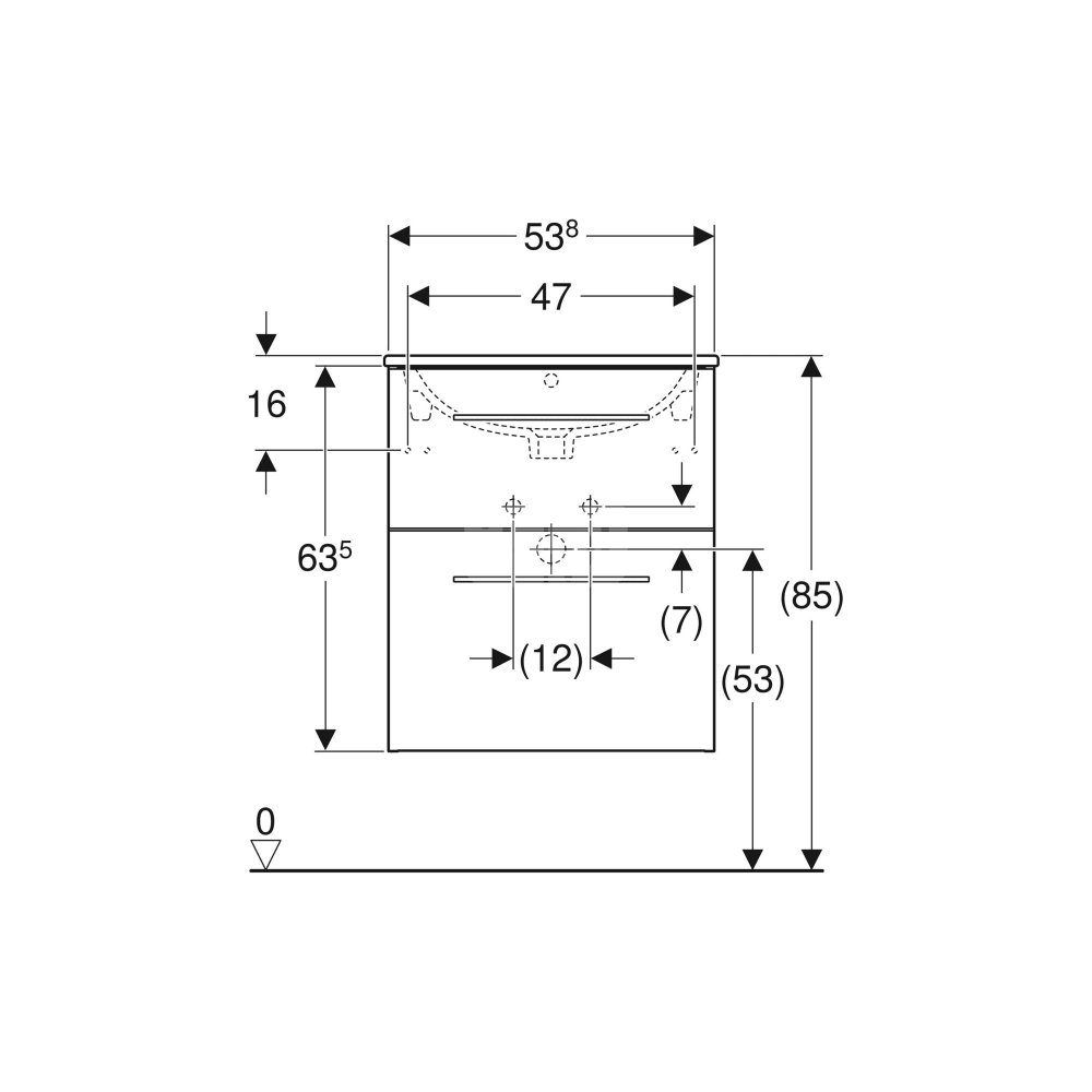 Umywalka GEBERIT Selnova Square prostokątna, biała, 600mm, otwór na baterię na środku, nakładany od góry, z odpływem przelewowym, półka od ściany