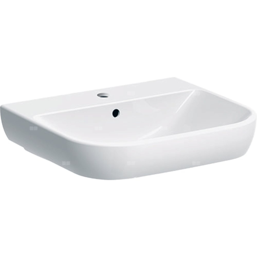 Umywalka GEBERIT Smyle prostokątna-owalna, biała / KeraTect, 550mm, otwór na baterię na środku, z odpływem przelewowym, półka od ściany