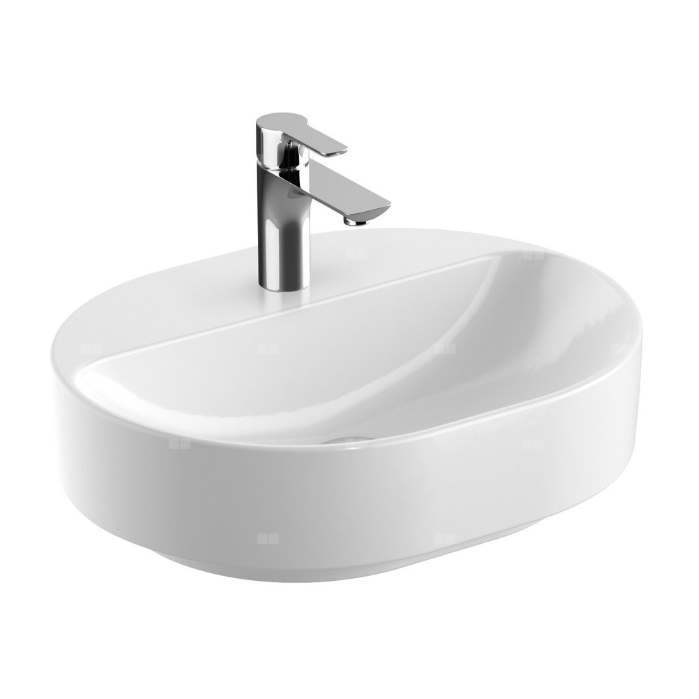 Umywalka GEBERIT Variform eliptyczna, biała / KeraTect, 500mm, otwór na baterię na środku, stawiana na blat, bez odpływu przelewowego, półka od ściany