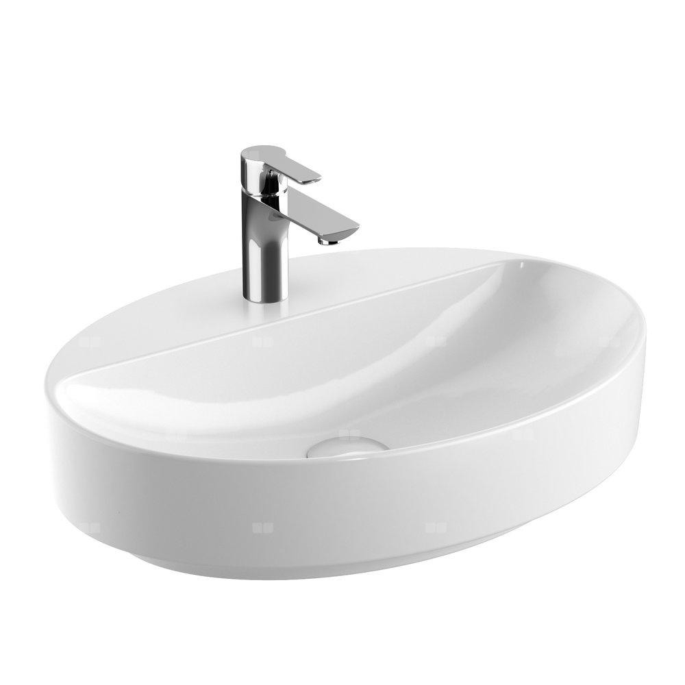 Umywalka GEBERIT Variform owalna, biała, 600mm, otwór na baterię na środku, stawiana na blat, bez odpływu przelewowego, półka od ściany