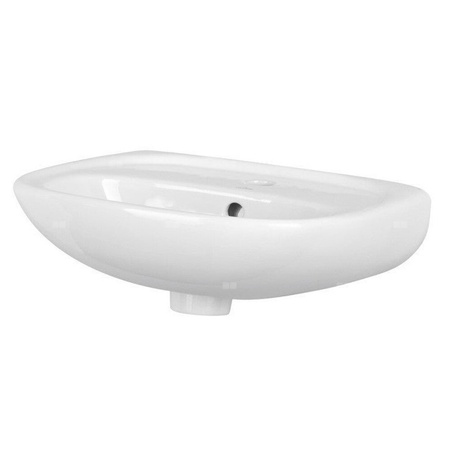 Umywalka MARKET posiada centralnie zlokalizowany otwór na baterię i przelew. Może być montowana bezpośrednio do ściany z ozdobnym syfonem.