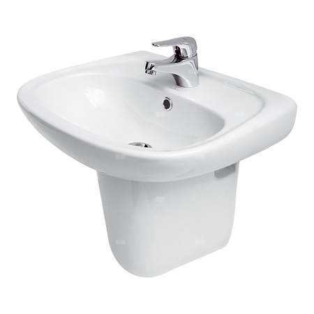 Umywalka MARKET posiada centralnie zlokalizowany otwór na baterię i przelew. Może być montowana bezpośrednio do ściany z ozdobnym syfonem.
