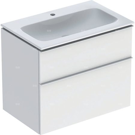 Zestaw umywalki meblowej Geberit iCon slim rim, z szafką pod umywalkę, z dwoma szufladami i zestawem odpływowo-przelewowym do umywalki: B=75cm, Umywalka: biały, Korpus i front: biały / lakierowany matowy, Uchwyt: biały / powlekany proszkowo, matowy