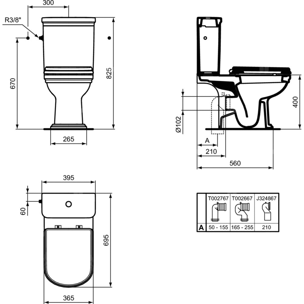 Zbiornik do kompaktu WC, boczny dopływ. Pojemność 4,5/3 L.