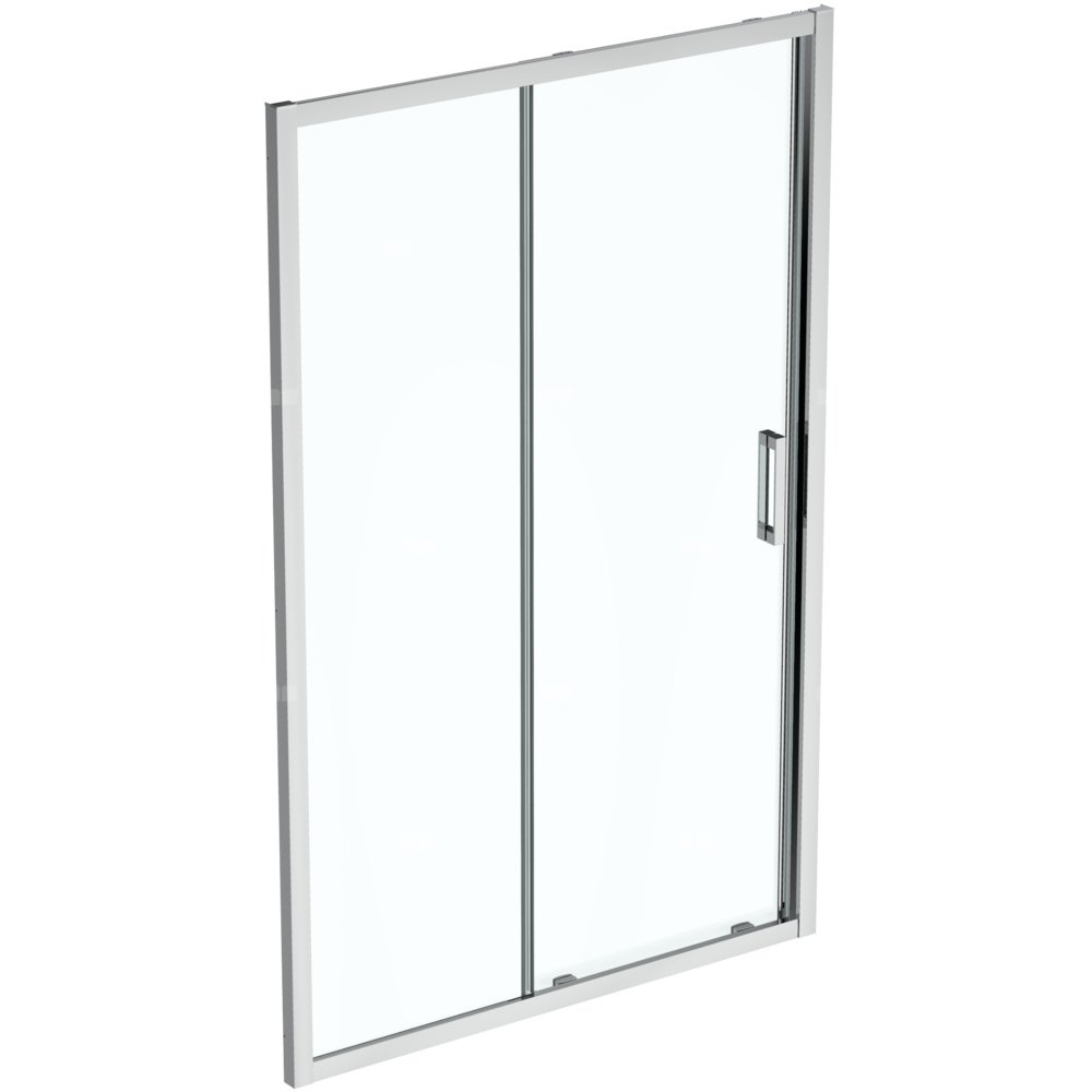 CONNECT 2 Drzwi prysznicowe przesuwne. Wysokość 195 cm. Bezpieczne, hartowane, szkło grubości 6 mm. Szkło przeźroczyste pokryte w standardzie powłoką IDEAL CLEAN ułatwiajacą utrzymanie czystości. Profile aluminiowe dostępne w kolorach srebrnym połysk i biały mat. Wygodne metalowe uchwyty drzwi długości 225 mm w kolorze chrom. Drzwi kabiny z funkcją ułatwiająca czyszczenie „Click & Clean” (możliwość szybkiego odpięcia dolnej częsci drzwi). Drzwi przesuwne z wysokiej jakości rolkami zapewniającymi ciche i płynne działanie. Profile ułatwiające montaż i dostosowanie wymiarów kabiny w zakresie do 25 mm. Drzwi przesuwne do montażu we wnęce lub do skompletowania z wybraną ścianką boczną jako kabina narożna. Możliwość montażu bezpośrednio na podłodze lub skompletowania z odpowiednimi brodzikami Ideal Standard. Zalecane dodatkowe elementy: CONNECT 2 Ścianka boczna w wybranym rozmiarze. Uwaga: Drzwi kabiny są odwracalne.
