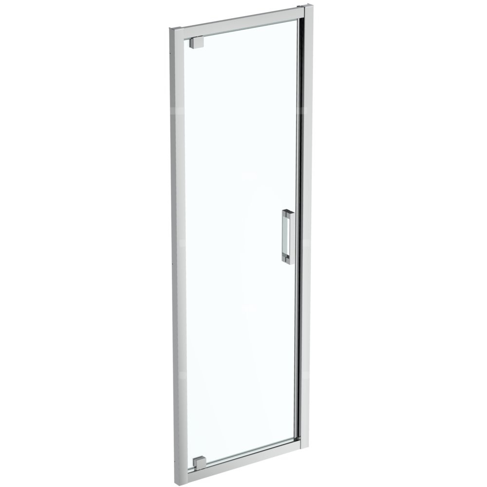 CONNECT 2 Drzwi prysznicowe. Wysokość 195 cm. Bezpieczne, hartowane, szkło grubości 6 mm. Szkło przeźroczyste pokryte w standardzie powłoką IDEAL CLEAN ułatwiajacą utrzymanie czystości. Profile aluminiowe dostępne w kolorach srebrnym połysk i biały mat. Wygodne metalowe uchwyty drzwi długości 225 mm w kolorze chrom. Profile ułatwiające montaż i dostosowanie wymiarów kabiny w zakresie do 25 mm. Drzwi otwierane na zewnątrz do montażu we wnęce lub do skompletowania z wybraną ścianką boczną jako kabina narożna. Możliwość montażu bezpośrednio na podłodze lub skompletowania z odpowiednimi brodzikami Ideal Standard. Zalecane dodatkowe elementy: CONNECT 2 Ścianka boczna w wybranym rozmiarze. Uwaga: Drzwi kabiny są odwracalne.