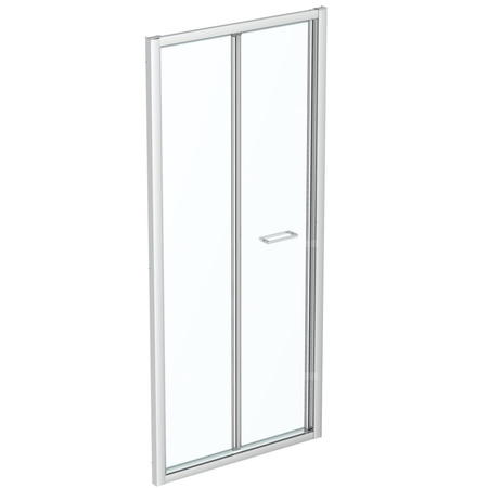 CONNECT 2 Drzwi prysznicowe składane. Wysokość 195 cm. Bezpieczne, hartowane, szkło grubości 6 mm. Szkło przeźroczyste pokryte w standardzie powłoką IDEAL CLEAN ułatwiającą utrzymanie czystości. Profile aluminiowe dostępne w kolorach srebrnym połysk i biały mat. Wygodne metalowe uchwyty drzwi długości 225 mm w kolorze chrom. Profile ułatwiające montaż i dostosowanie wymiarów kabiny w zakresie do 25 mm. Drzwi składane na zewnątrz i do wewnątrz do montażu we wnęce lub do skompletowania z wybraną ścianką boczną jako kabina narożna. Możliwość montażu bezpośrednio na podłodze lub skompletowania z odpowiednimi brodzikami Ideal Standard. Zalecane dodatkowe elementy: CONNECT 2 Ścianka boczna w wybranym rozmiarze. Uwaga: Drzwi kabiny są odwracalne.