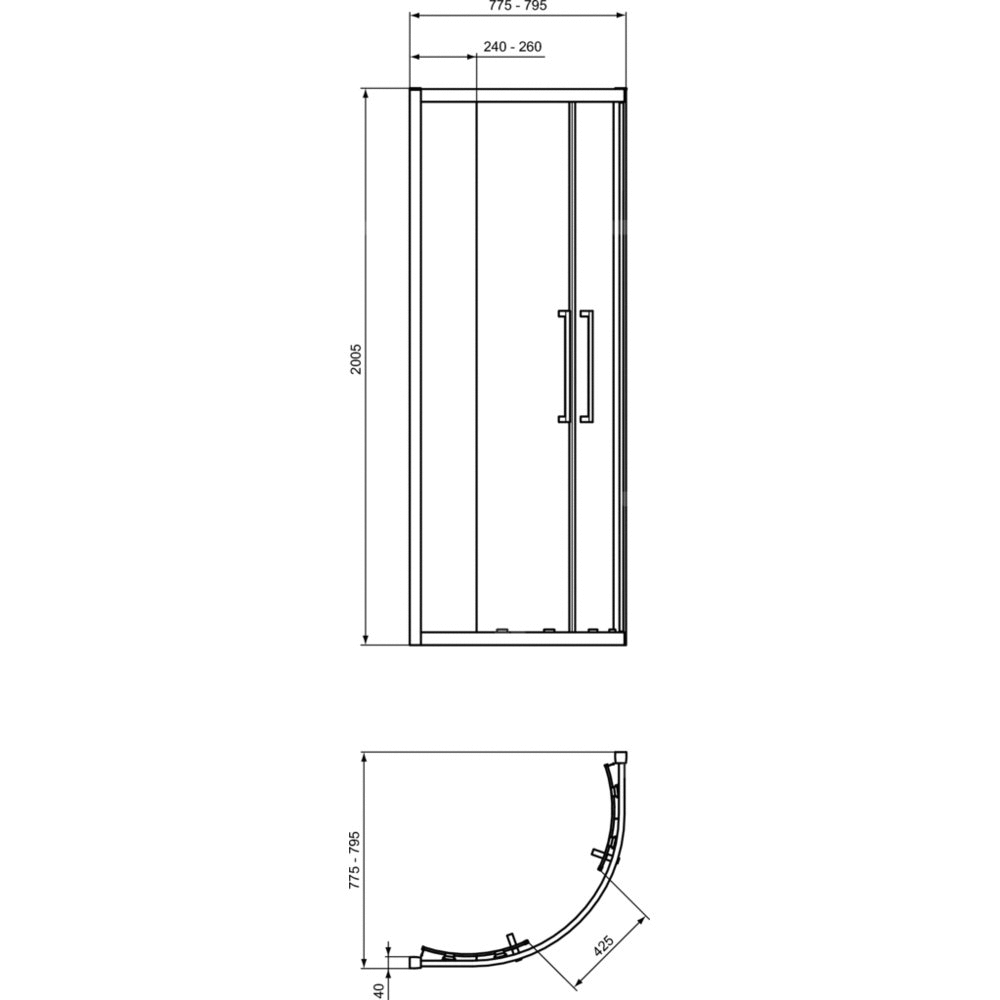 Kabina prysznicowa narożna półokrągla (pełny komplet), z drzwiami przesuwnymi, promień 55 cm. Wykonane z bezpiecznego transparentnego szkła 8 mm z powłoką Ideal Clean zabezpieczającą przed osadzaniem się kamienia. Profile srebrne aluminiowe o grubości 1,2 mm. Zastosowanie systemu podwójnych kółek na górze z systemem szybkiego zamykania na dole.Rozciągliwość 20 mm na profil. Do montażu z brodzikami Ideal Standard o dostosowanych wymiarach lub bezpośrednio na płytkach. Wszystkie produkty z linii są odwracalne. Więcej informacji oraz rekomendowanych rozwiązań znajduje się w katalogu lub cenniku.