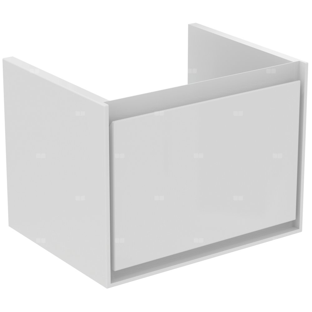 Wisząca. 1 szuflada ze zintegrowanym uchwytem. Szuflady z systemem samodomykania. Zestaw montażowy w komplecie. Szafka do skompletowania z: umywalką Cube 60 cm E074201. Zalecany: syfon oszczędzający przestrzeń EE23033967 (zamawiany oddzielnie).