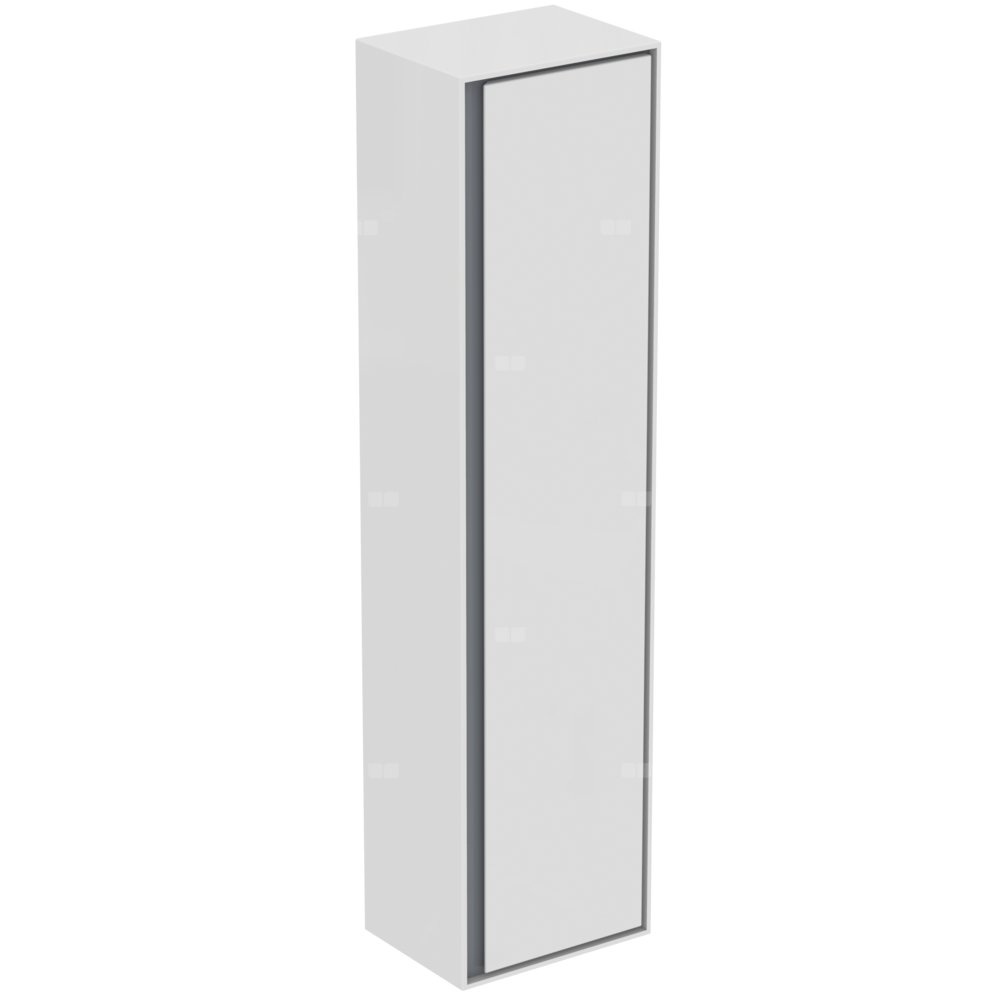Szafka wisząca, odwracalna. Drzwi szafki ze zintegrowanym uchwytem. System samodomykania. Wewnątrz: 4 szklane półki. 1 wewnętrzna szuflada. Zestaw montażowy w komplecie.