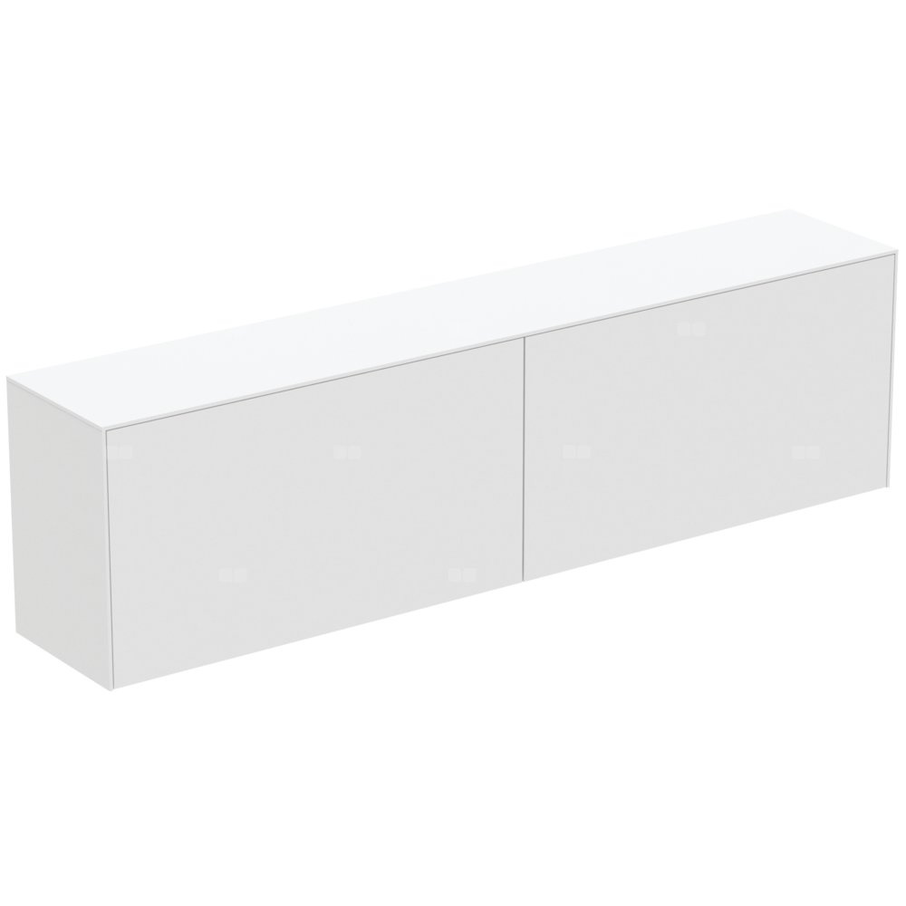 Szafka pod umywalkę bez wycięć na blacie. Do samodzielnego montażu lub do kompletowania z wiszącymi (szlifowanymi od spodu) lub nablatowymi umywalkami (z wykorzysteniem szablonów do wycięcia otworu). Z 2 zewnętrznymi oraz 2 wewnętrznymi szufladami z funkcjami Push to open i wolnym zamykaniem. Wykończenie wewnętrzne szafek w kolorze antracytowym.