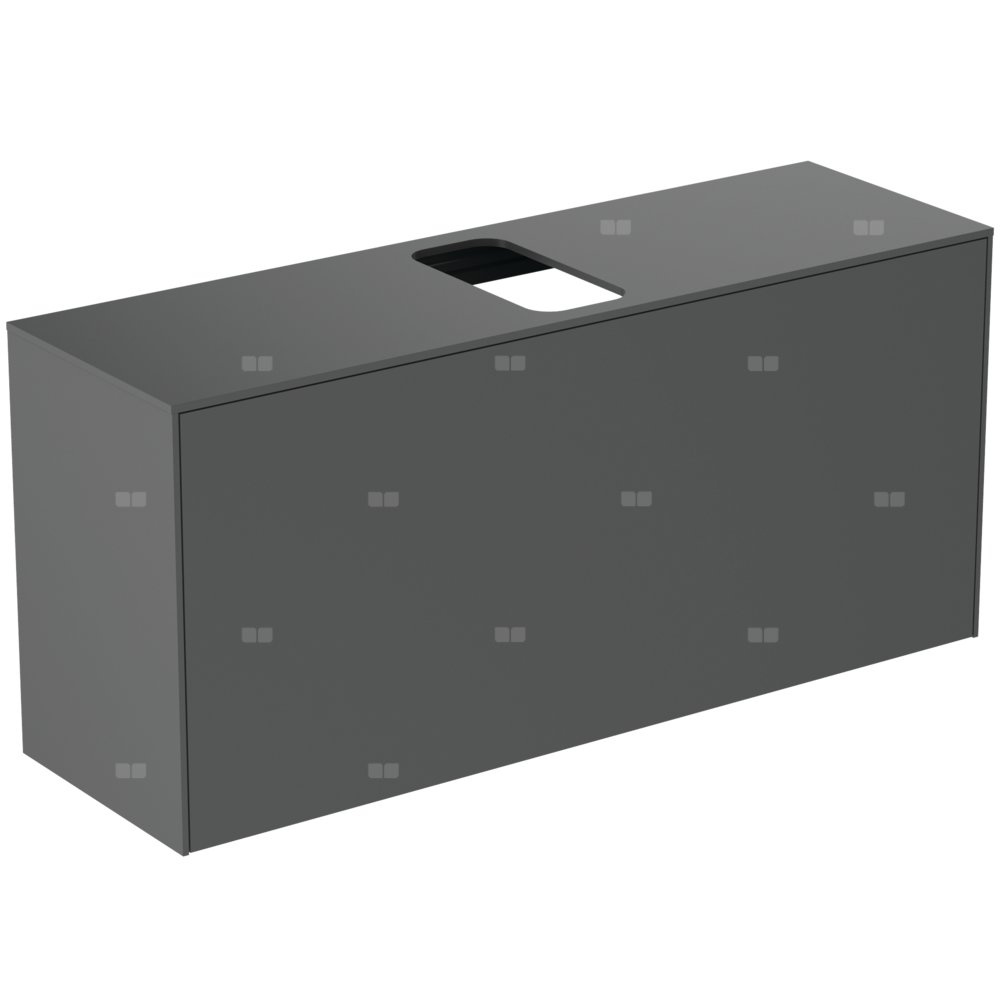Szafka pod umywalkę z centralnie wyciętym otworem w blacie z 1 zewnętrzną i 1 wewnętrzną szufladą z funkcjami push to open i samodomykania "soft close". Wykończenie wewnętrzne szafek w kolorze antracytowym. Do kompletowania z: umywalkami wiszącymi Conca (szlifowanymi) 40-120 cm, umywalkami nablatowymi Conca 45/60 cm, umywalkami wiszącymi Extra (szlifowanymi) 45-100 cm, umywalkami Extra 50/60 cm, umywalkami nablatowymi Ipalyss 40-80 cm. Rekomendowane wyposażenie: syfon oszczędzający przestrzeń EE23033967 - dostępny w osobnym zamówieniu.