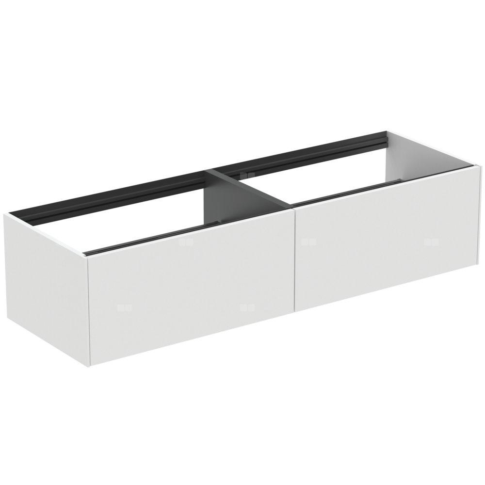 Szafka pod umywalkę do kompletowania z blatem ceramicznym 160 cm T4202. Blat ceramiczny (bez otworu/z otworem na zamówienie) zamawiany oddzielnie pod wymiar wybranej umywalki. Z 2 szufladami z funkcjami push to open i samodomykania "soft close". Wykończenie wewnętrzne szafek w kolorze antracytowym, pasujące do koloru szuflad.