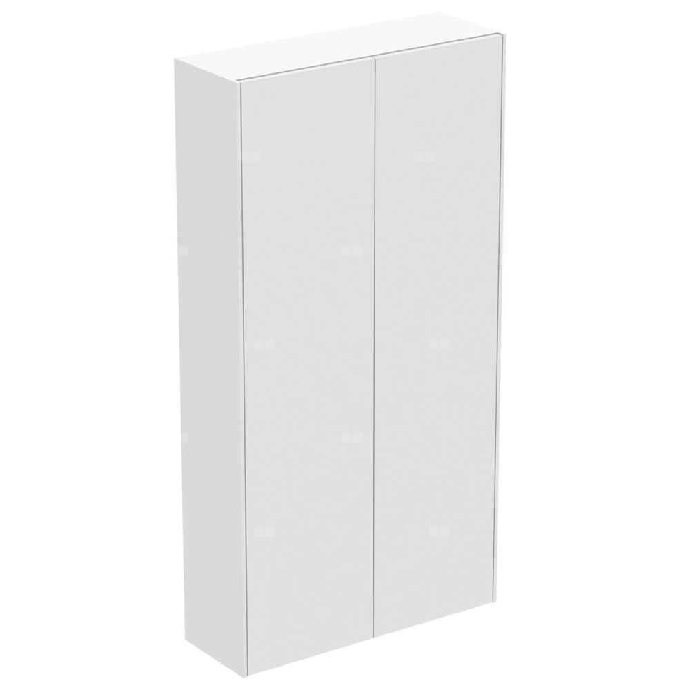Szafka kolumnowa z 2 drzwiami z systemem push to open. 4 szklane i 1 drewniana półka.