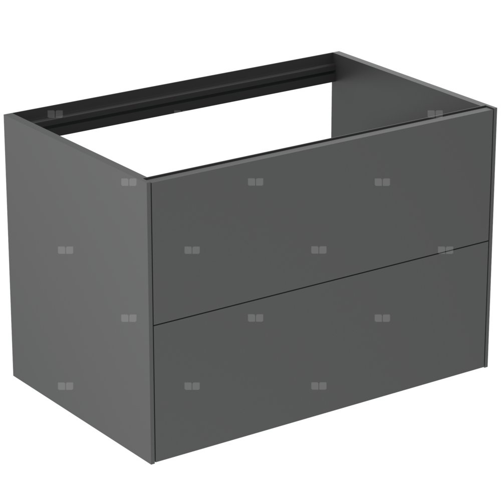 Z 2 zewnętrznymi szufladami z funkcjami push to open i samodomykania "soft close". Wykończenie wewnętrzne szafek w kolorze antracytowym, pasujące do koloru szuflad. Do kompletowania z blatem ceramicznym 80 cm T3970. Blat ceramiczny (bez otworu/z otworem na zamówienie) zamawiany oddzielnie pod wymiar wybranej umywalki. Rekomendowane wyposażenie: syfon oszczędzający przestrzeń EE23033967 - dostępny w osobnym zamówieniu.