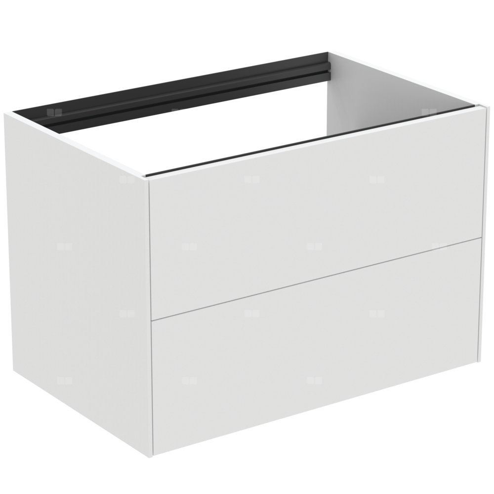 Szafka pod umywalkę z 2 zewnętrznymi szufladami do kompletowania z blatem ceramicznym 80 cm T3970. Blat ceramiczny (bez otworu/z otworem na zamówienie) zamawiany oddzielnie pod wymiar wybranej umywalki. Szuflady z funkcjami Push to open i wolnym zamykaniem. Wykończenie wewnętrzne szafek w kolorze antracytowym, pasujące do koloru szuflad.