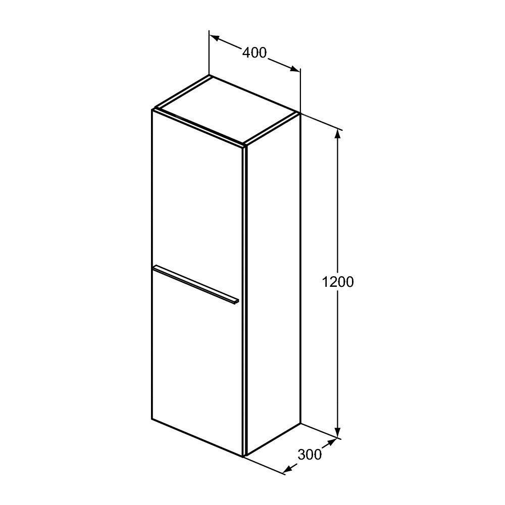 Szafka kolumnowa wisząca - niska (1200 mm) z 1 drzwiami z systemem samodomykania "soft close". Odwracalna. Zestaw montażowy w komplecie. Nie zawiera uchwytu (T5325xx) - dostępny w różnych wykończeniach przy osobnym zamówieniu.