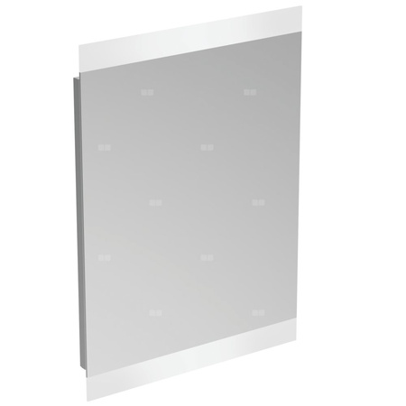 Lustro z oświetleniem High 50x70 cm. Odwracalne. Z systemem zapobiegającym parowaniu i ramą: mniejszą niż lustro. Oświetlenie LED: górne i dolne (dla umywalki). Włącznik do czujnika światła ze ściemniaczem i antyparą. Parametry: 220-240 V, 50-60 Hz, IP44, klasa II. Zestaw montażowy w komplecie.