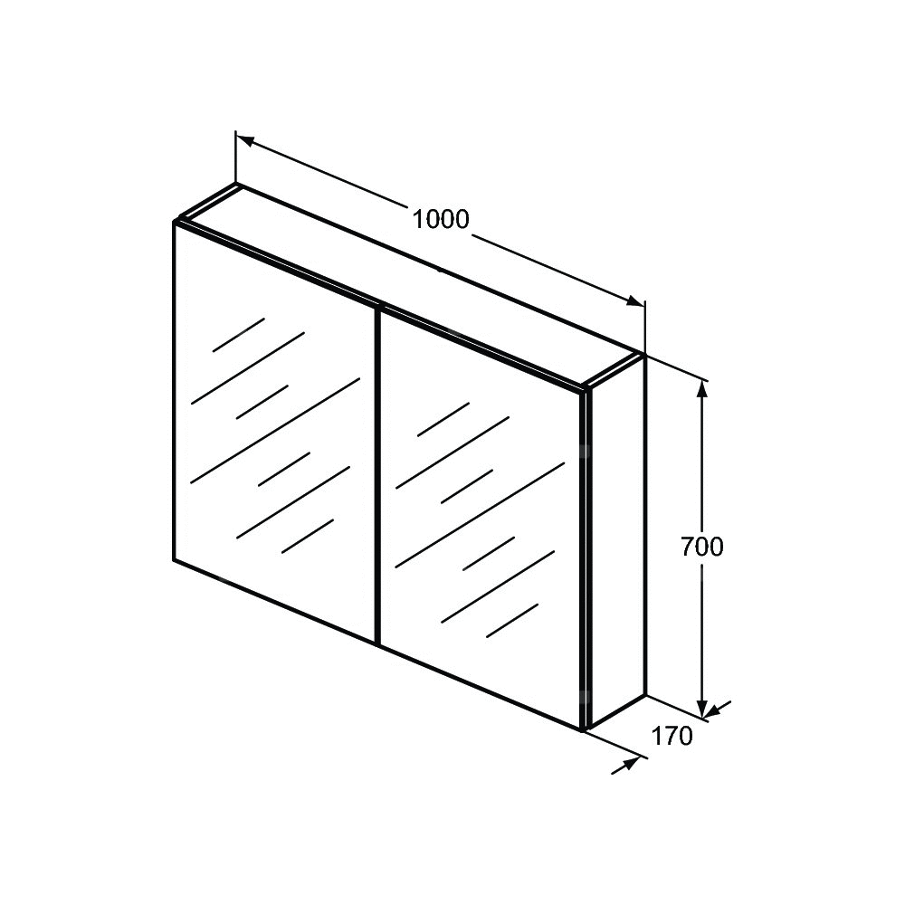 Szafka z lustrem Mid 100x70 cm, z 2 drzwiami z systemem soft close, gniazdem golarki i regulowaną szklaną półką. Zestaw montażowy w komplecie.