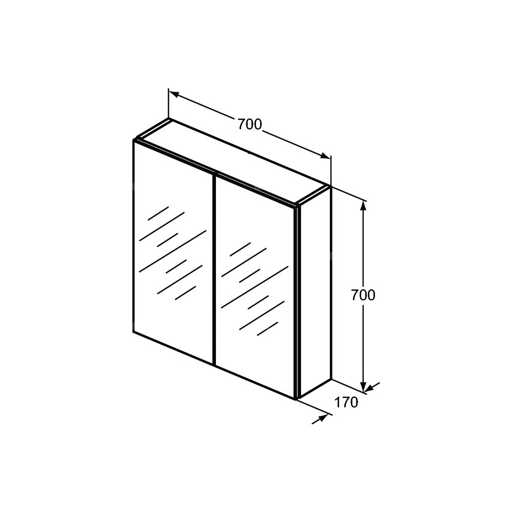 Szafka z lustrem Mid 70x70 cm, 2 drzwi, 1-stronne lustrzane drzwi z systemem soft close. Wbudowane dolne oświetlenie LED dla umywalki. Wewnętrzne lustro kosmetyczne, samoprzylepny metalowy uchwyt. Wyłącznik, gniazdo golarki, regulowana szklana półka. Parametry: 220-240 V, 50-60 Hz, IP 44, klasa II. Zestaw montażowy w komplecie.