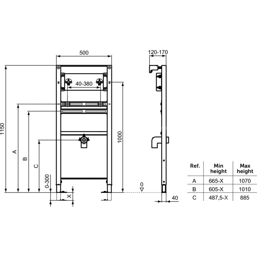 Do zastosowania z baterią ścienną. Instalacja: zabudowa podtynkowa z mocowaniem ściennym. Odporność na korozję i obciążenia do 150 kg. System montażu zapewniający szybką i łatwą instalację. Wsporniki z blokadą ułatwiającą montaż i regulacją wysokości w zakresie od 0 do 300 mm. Minimalna głębokość montażu 120 mm. Regulacja wysokości i rozstawu mocowania umywalki. Regulowana płyta do montażu baterii ściennej. Elementy w komplecie: Standardowy zestaw montażowy do umywalki. Kompletny zestaw montażowy, wraz ze wspornikami ściennymi. Kolano rury odpływu. Przyłacza kątowe do baterii G ½ - 2 szt.