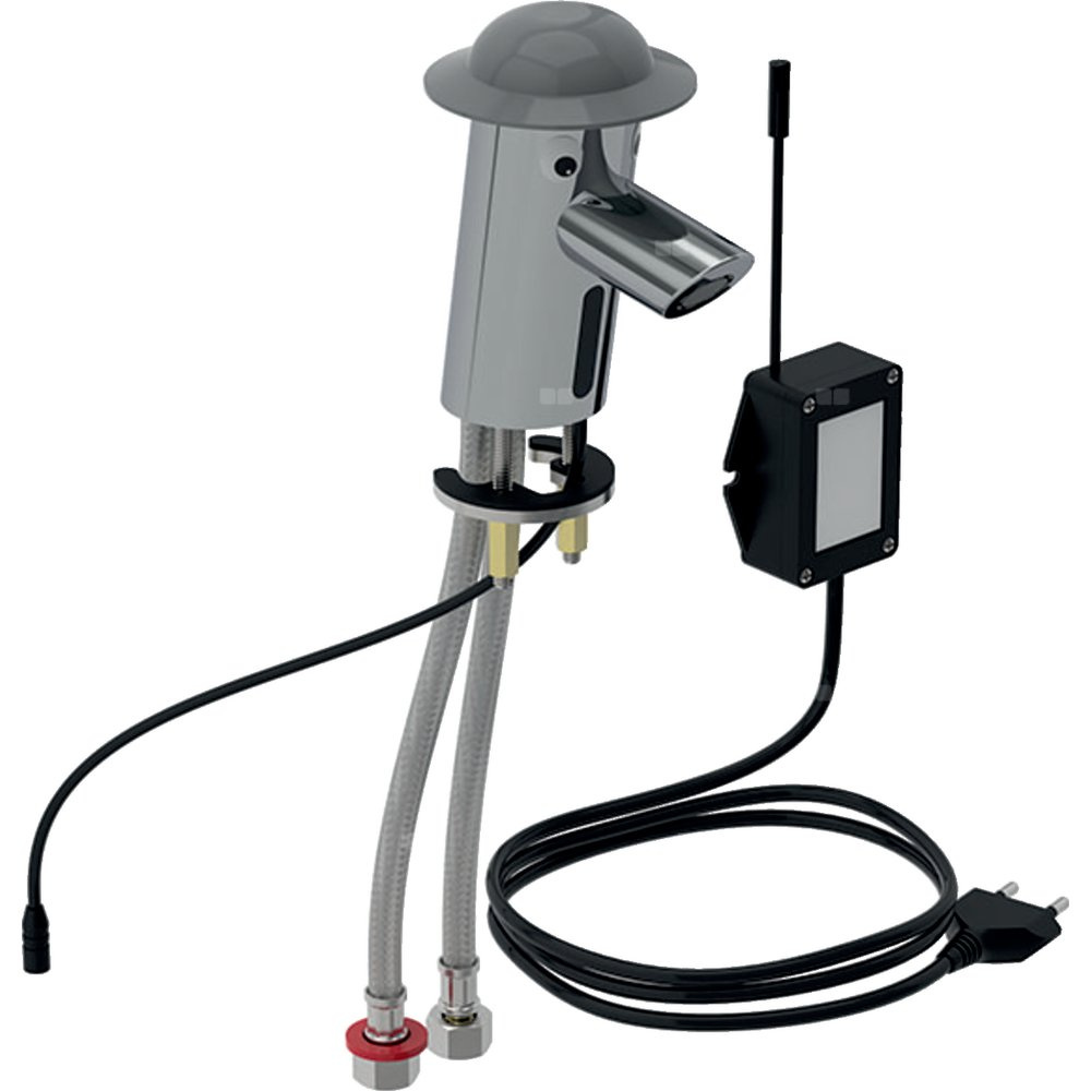 Bateria umywalkowa Geberit Bambini, zasilanie sieciowe: Mieszacz=Z mieszaczem, Osłona: szara, Korpus: chrom błyszczący