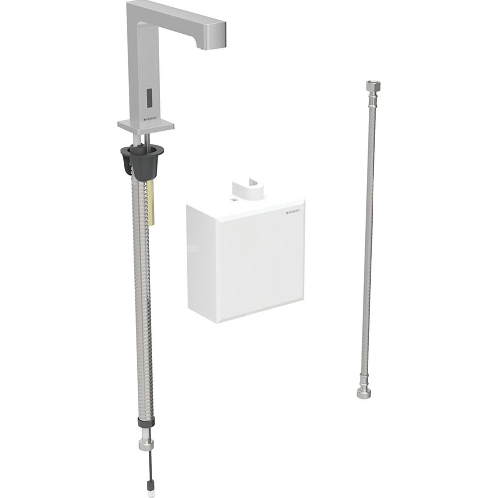 Bateria umywalkowa Geberit Brenta, stojąca, zasilanie generatorowe, z natynkową skrzynką funkcyjną, bez mieszacza, stal nierdzewna
