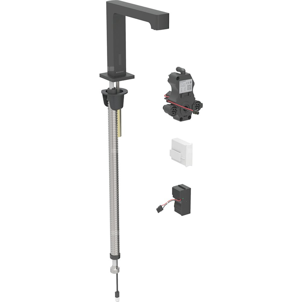 Bateria umywalkowa Geberit Brenta, stojąca, zasilanie sieciowe, do podtynkowej skrzynki funkcyjnej, bez mieszacza, czarny mat