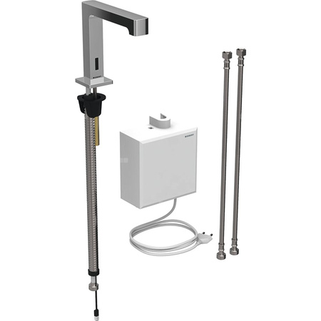Bateria umywalkowa Geberit Brenta, stojąca, zasilanie sieciowe, z natynkową skrzynką funkcyjną, bez mieszacza, chrom