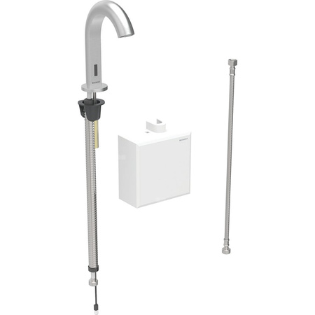 Bateria umywalkowa Geberit Piave, stojąca, zasilanie generatorowe, z natynkową skrzynką funkcyjną, bez mieszacza, stal nierdzewna