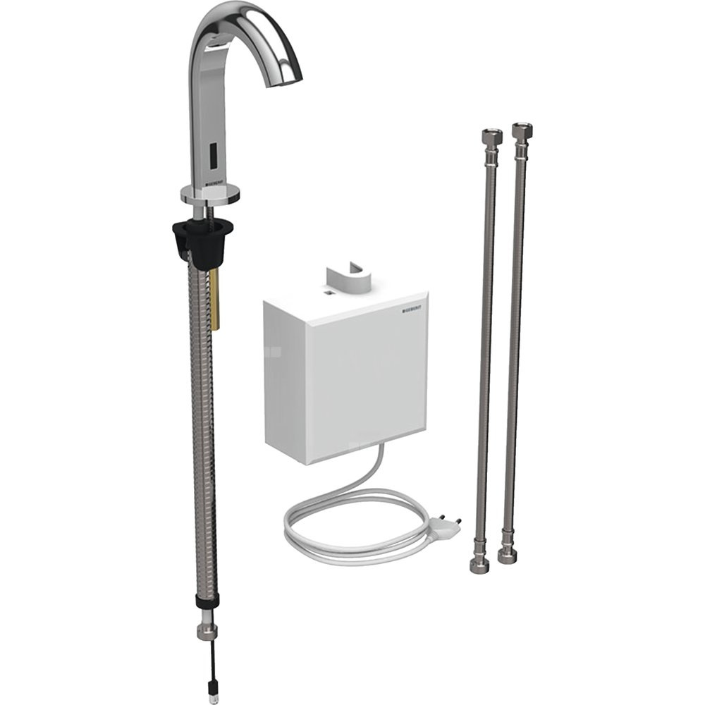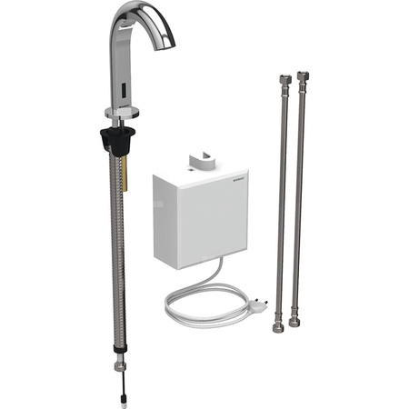 Bateria umywalkowa Geberit Piave, stojąca, zasilanie sieciowe, z natynkową skrzynką funkcyjną, bez mieszacza, chrom