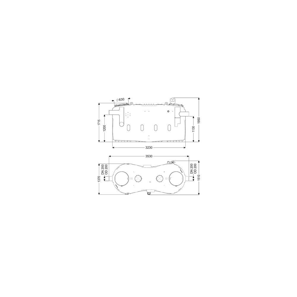 Odstęp między dnem rury dopływowej a dnem zbiornika: 1200 mm