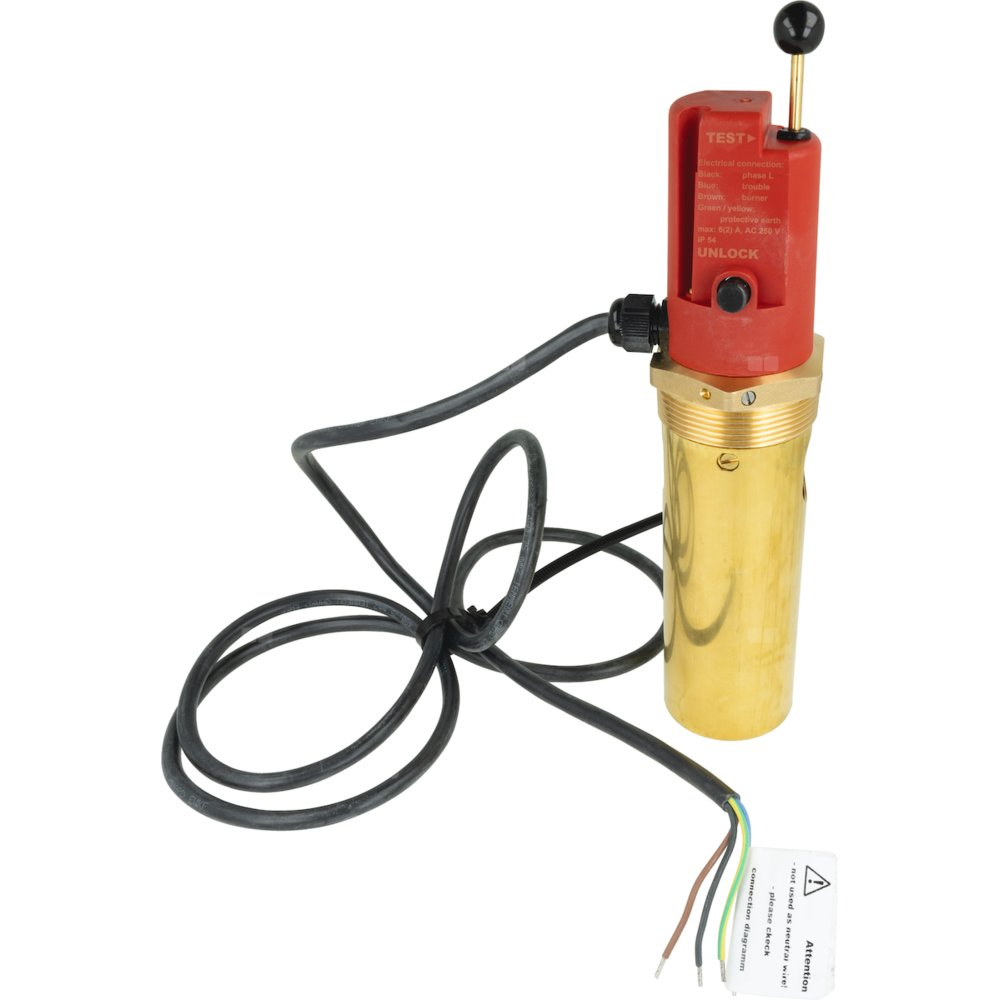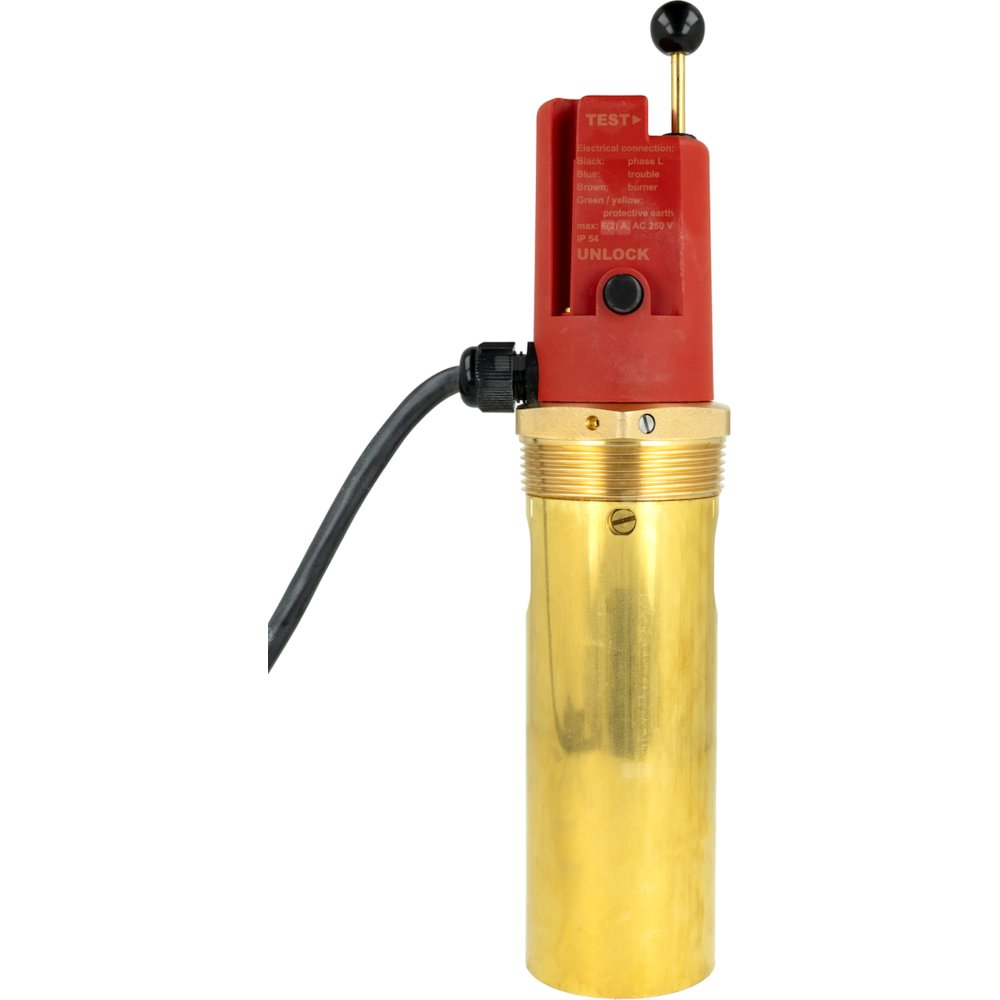 Elektromechaniczny czujnik niskiego poziomu wody w kotle WMS z rurą ochronną wkręcaną w kocioł i blokadą