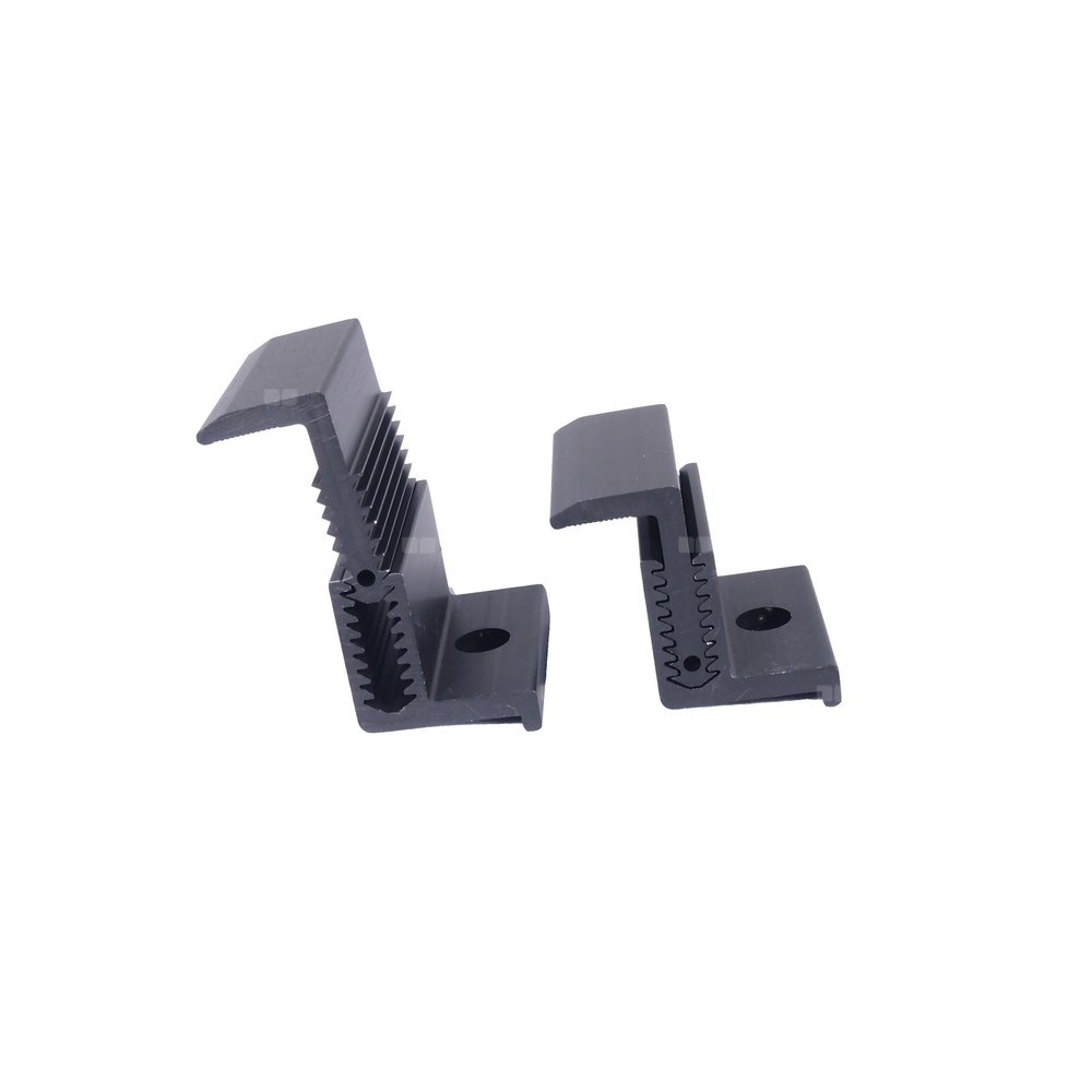 Klema końcowa przeznaczona do łączenia ramy panela fotowoltaicznego z szyną montażowa .