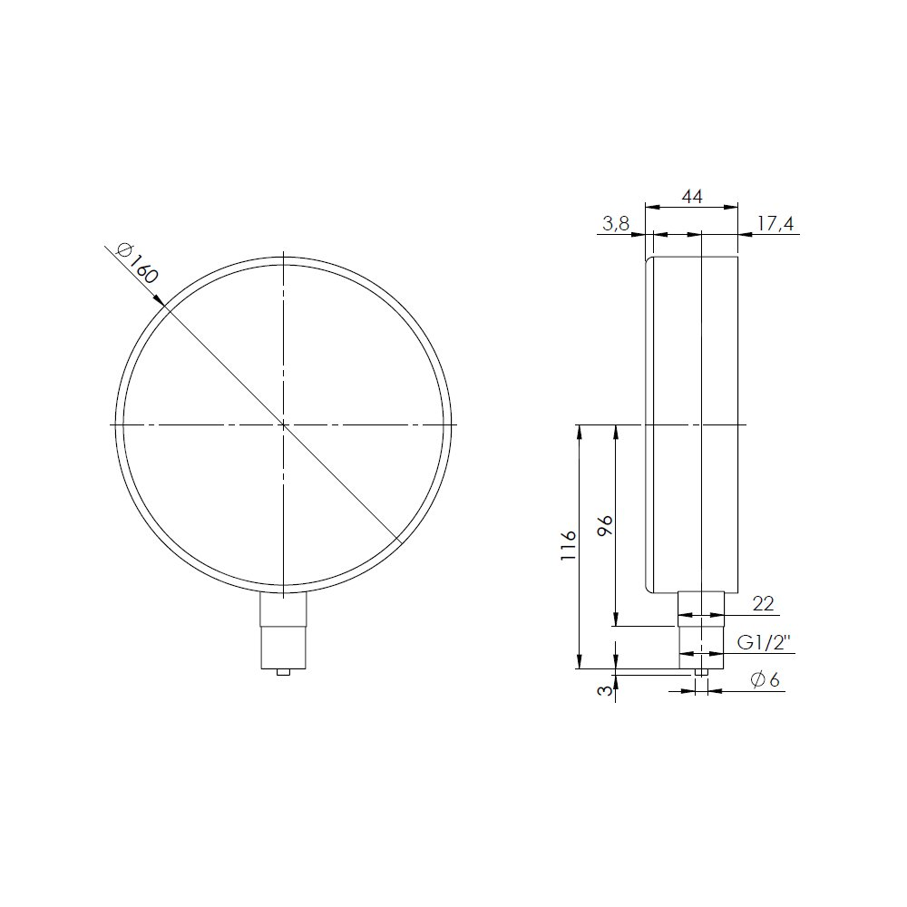 Ciśnieniomierz różnicowy AFRISO KP D401 -400/0 mbar mosiądz G1/2B radialne fi 160, kl. 1.6%