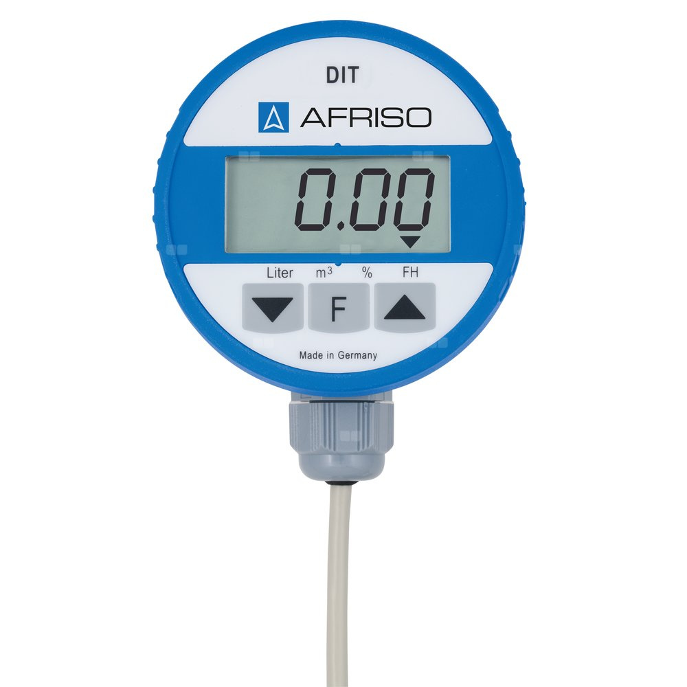 Odczyt pomiaru następuje w jednostkach: litry, m³, %, wysokość poziomu w mm.