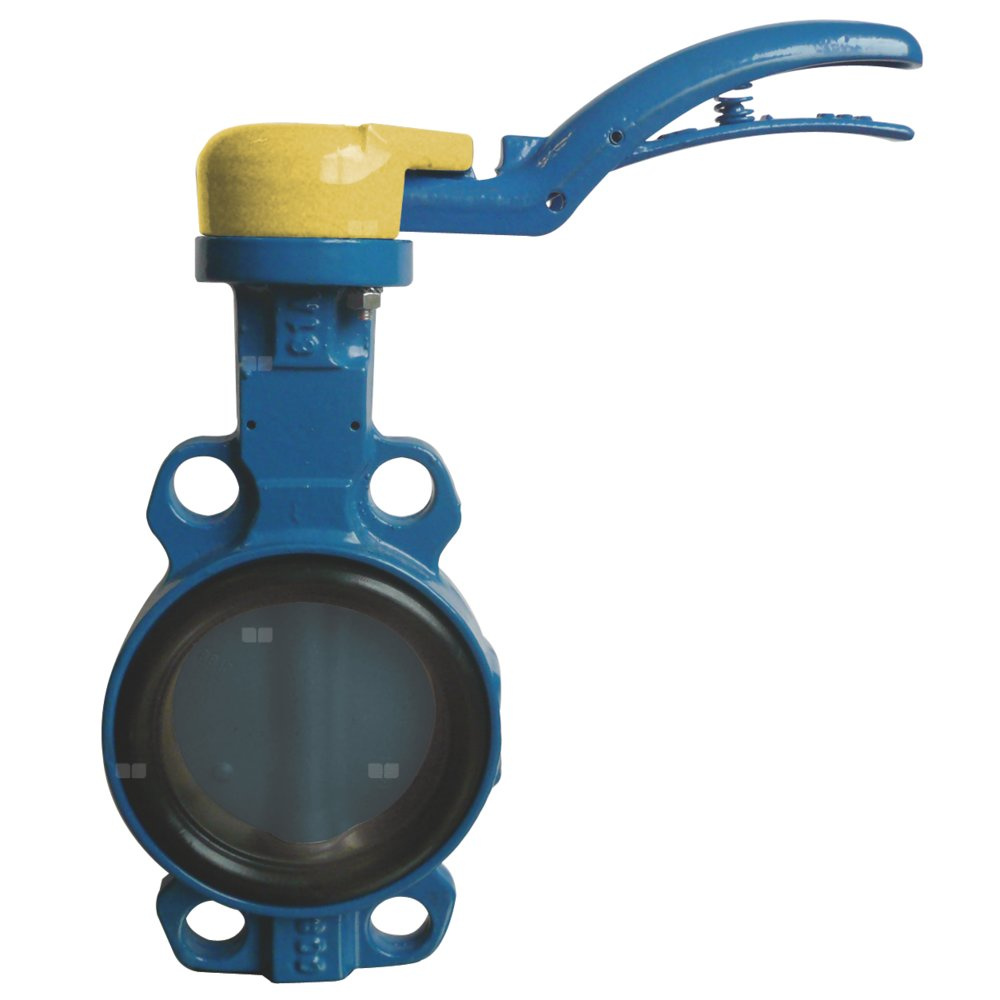 Przepustnica bezkołnierzowa SYLAX GAS z dźwignią ręczną, dysk: GGG40 powl. poliamidem, wykładzina: NBR, korpus: GGG40 epoksyd., Pnom 0,6 MPa, tmax=60 st.C DN100