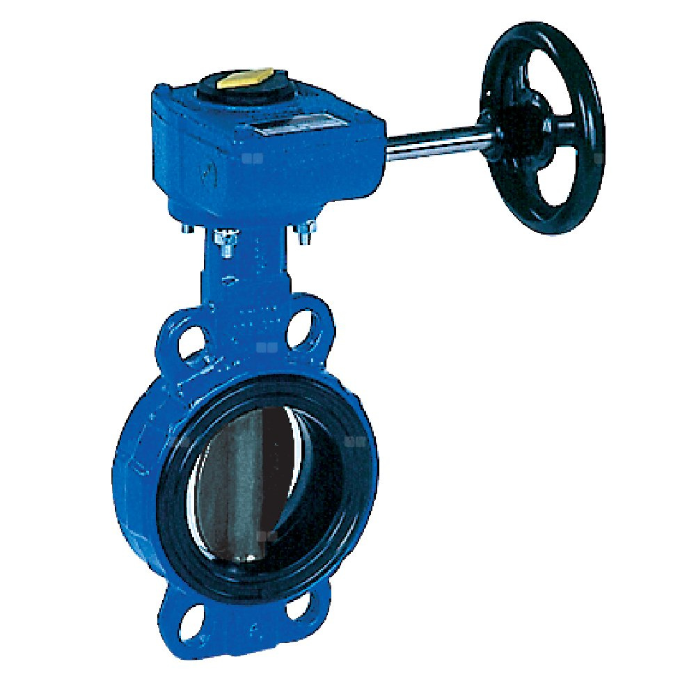Przepustnica bezkołnierzowa SYLAX GAS z przekładnią ślimakową, dysk: GGG40 powl. poliamidem, wykładzina: NBR, korpus: GGG40 epoksyd., Pnom 0,6 MPa, tmax=60 st.C DN300