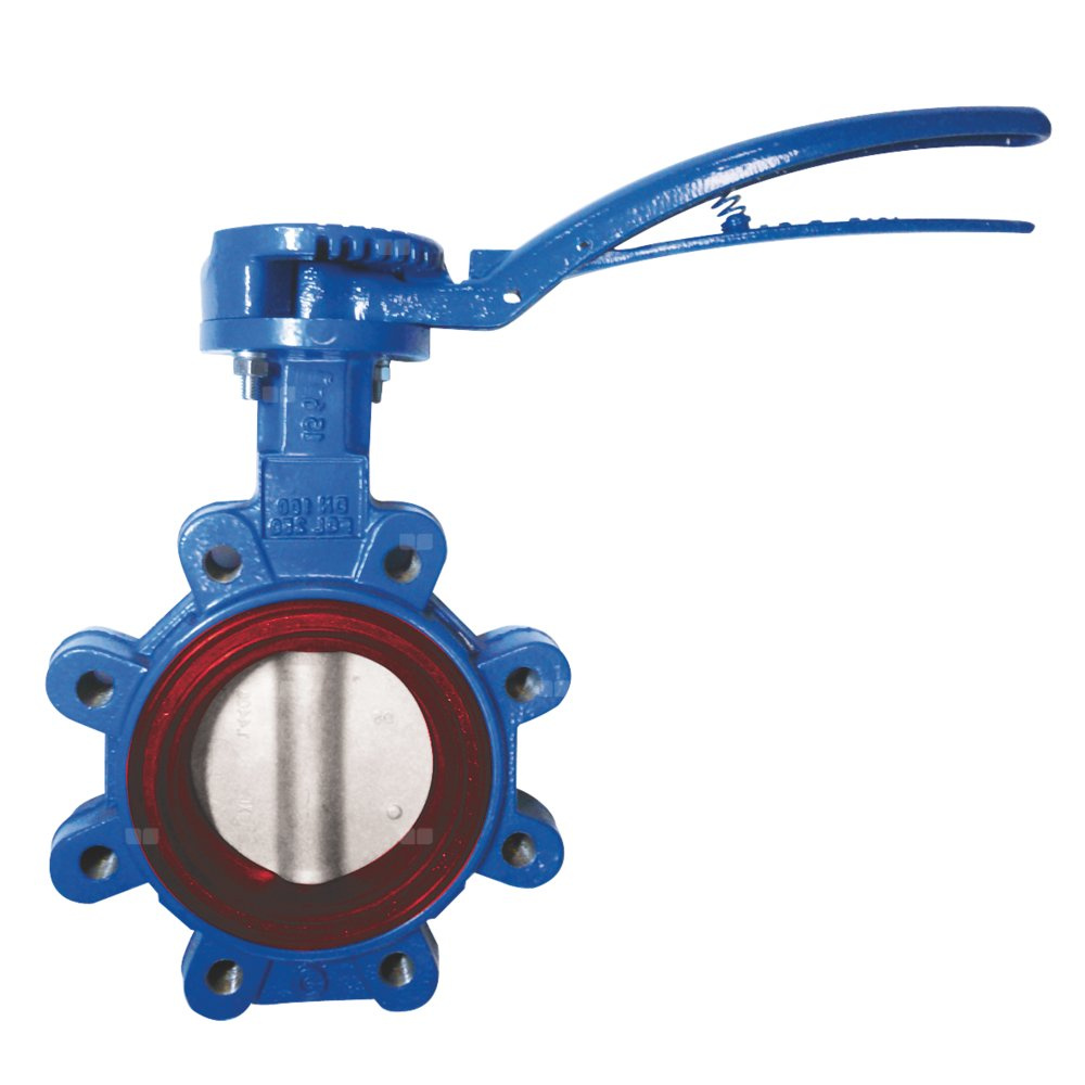 Przepustnica bezkołnierzowa SYLAX z napędem ręcznym dźwigniowym, dysk: AISI316, wykładzina: silikon, korpus: GGG40 epoksyd., Pnom 1,0 MPa, tmax=200 st.C DN32/40