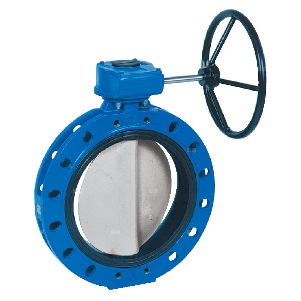 Przepustnica kołnierzowa SYLAX z przekładnią ślimakową, dysk: AISI316, wykładzina: NBR, korpus: GGG40 epoksyd., Pnom 2,0 MPa, tmax=85 st.C DN400