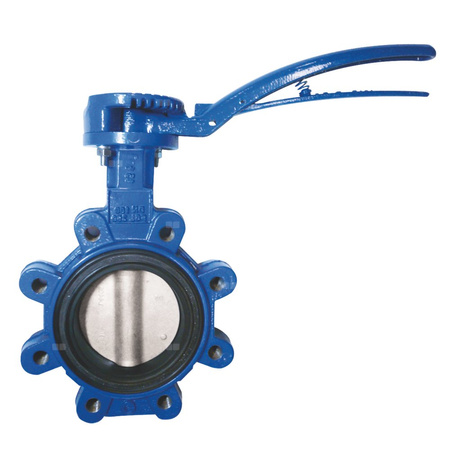 Przepustnica z otworami gwintowanymi SYLAX z napędem ręcznym dźwigniowym, dysk: AISI316, wykładzina: NBR, korpus: GGG40 epoksyd., PN16, Pnom 1,0 MPa, tmax=85 st.C DN250