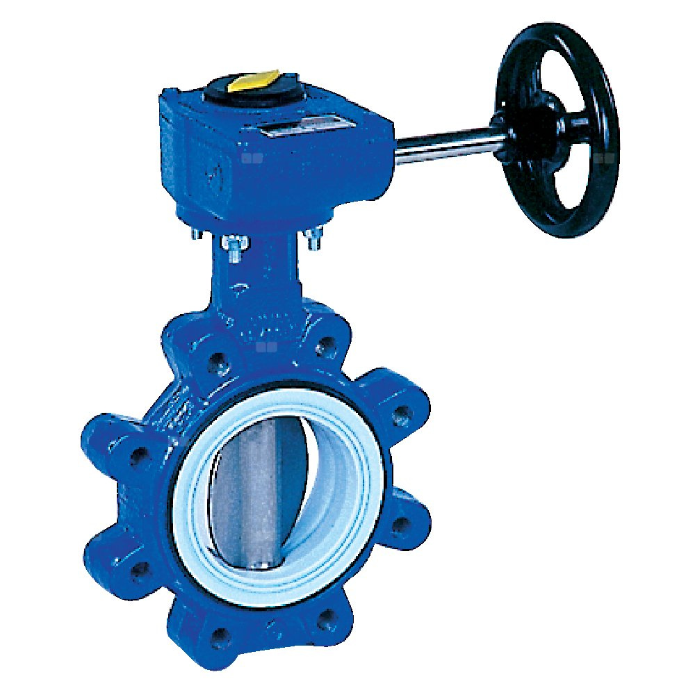 Przepustnica z otworami gwintowanymi TILIS z przekładnią ślimakową, dysk: AISI316, wykładzina: PTFE, korpus: GGG40 epoksyd., Pnom 1,0 MPa, tmax=150 st.C DN50