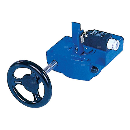 Ręczna przekładnia ślimakowa, smarowana fabrycznie - dożywotnio, napędzana kółkiem ręcznym wyposażona w jeden wyłącznik krańcowy DN 350