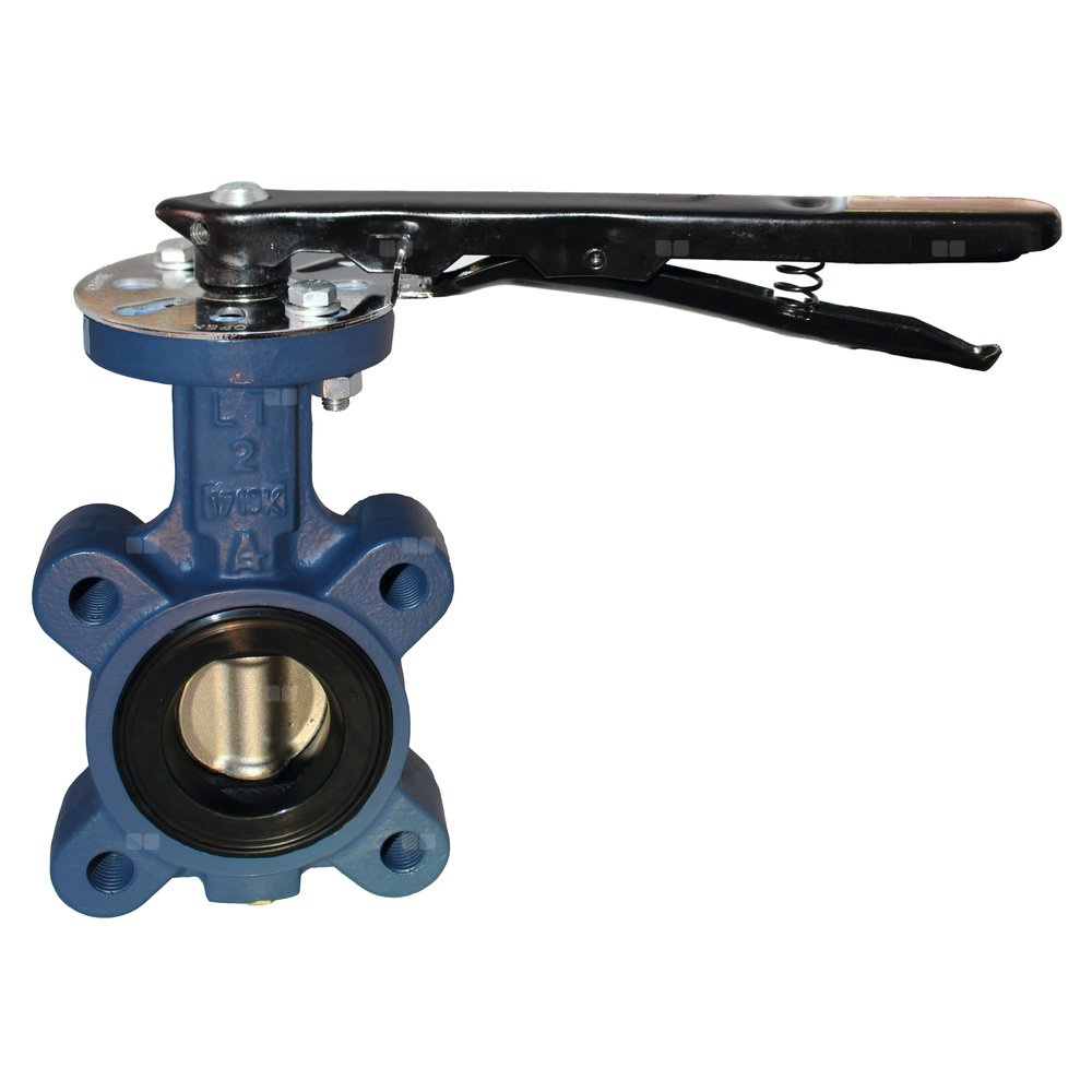 Zawór klapowy regulacyjny i odcinający. Korpus z żeliwa ziarnowanego JS 1030 wg EN 1563 polakierowany na niebiesko, dźwignia napędu z poliamidu wzmocnionego włóknem szklanym, z blokadą wspomaganą sprężynowo i zintegrowanym otworem do ryglowania.
