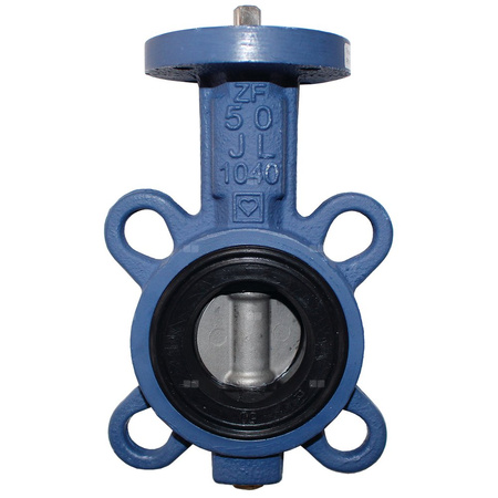 Zawór klapowy regulacyjny i odcinający. Korpus z żeliwa GJL 250 wg EN1561, polakierowany na niebiesko. Zawór bez dźwigni ręcznej. Maks. temperatura robocza 110 °C. Maks. ciśnienie robocze 16 bar.