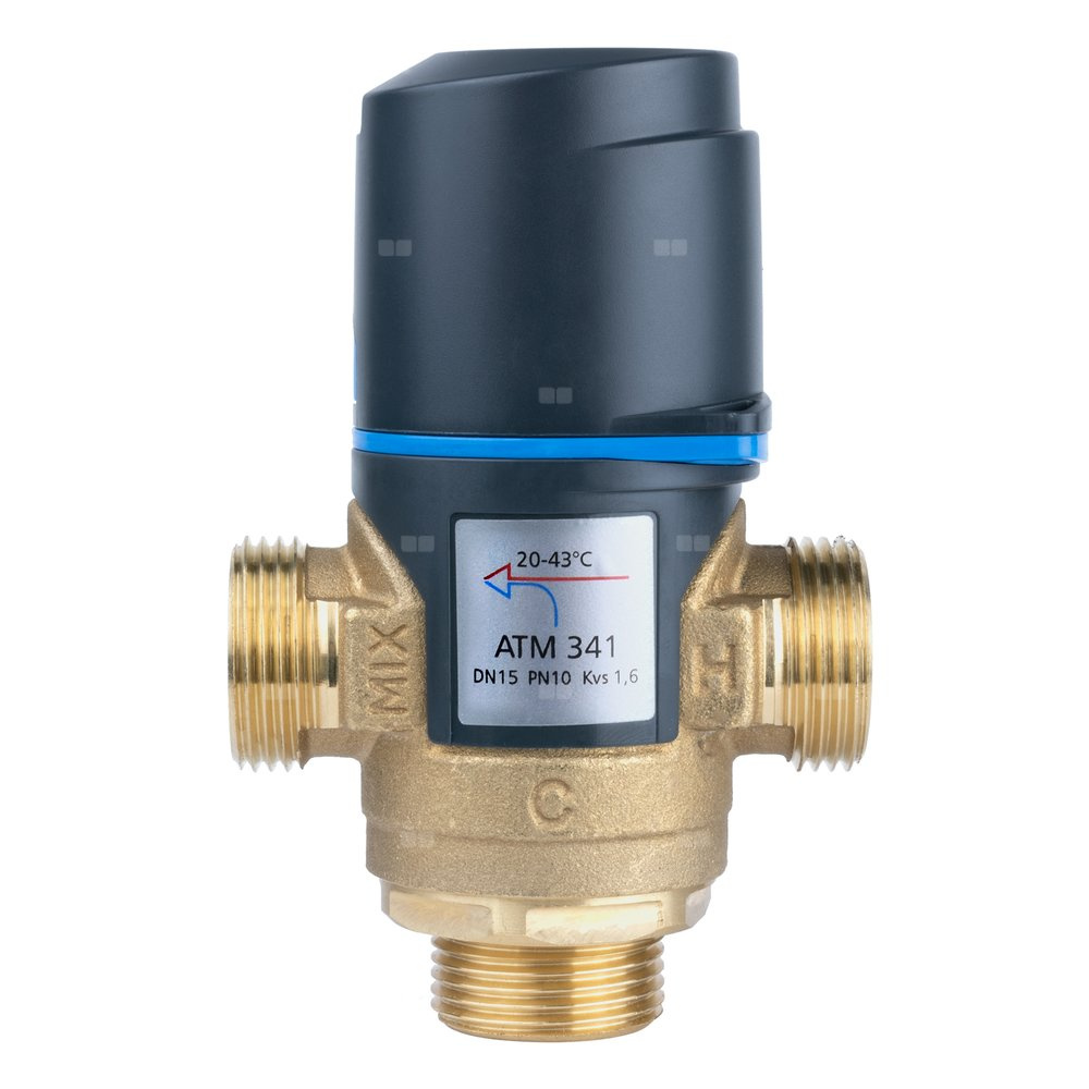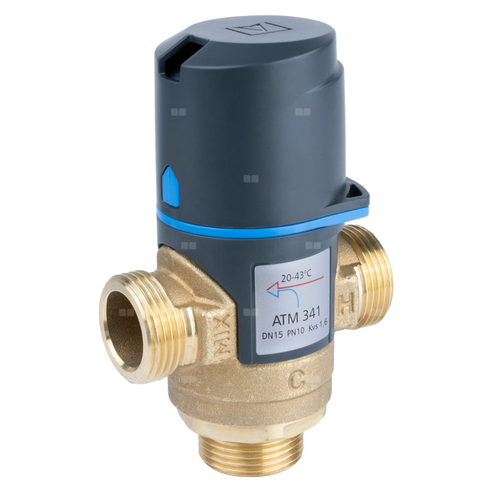 Zawór regulacyjny termostatyczny do wody ciepłej AFRISO ATM 341 ze śrubunkami mosiądz GZ 3/4'', DN 15, zakres temp. 20-43'C, Kvs 1.6 m3/h, maksymalna temperatura 90'C, maksymane ciśnienie 10 bar