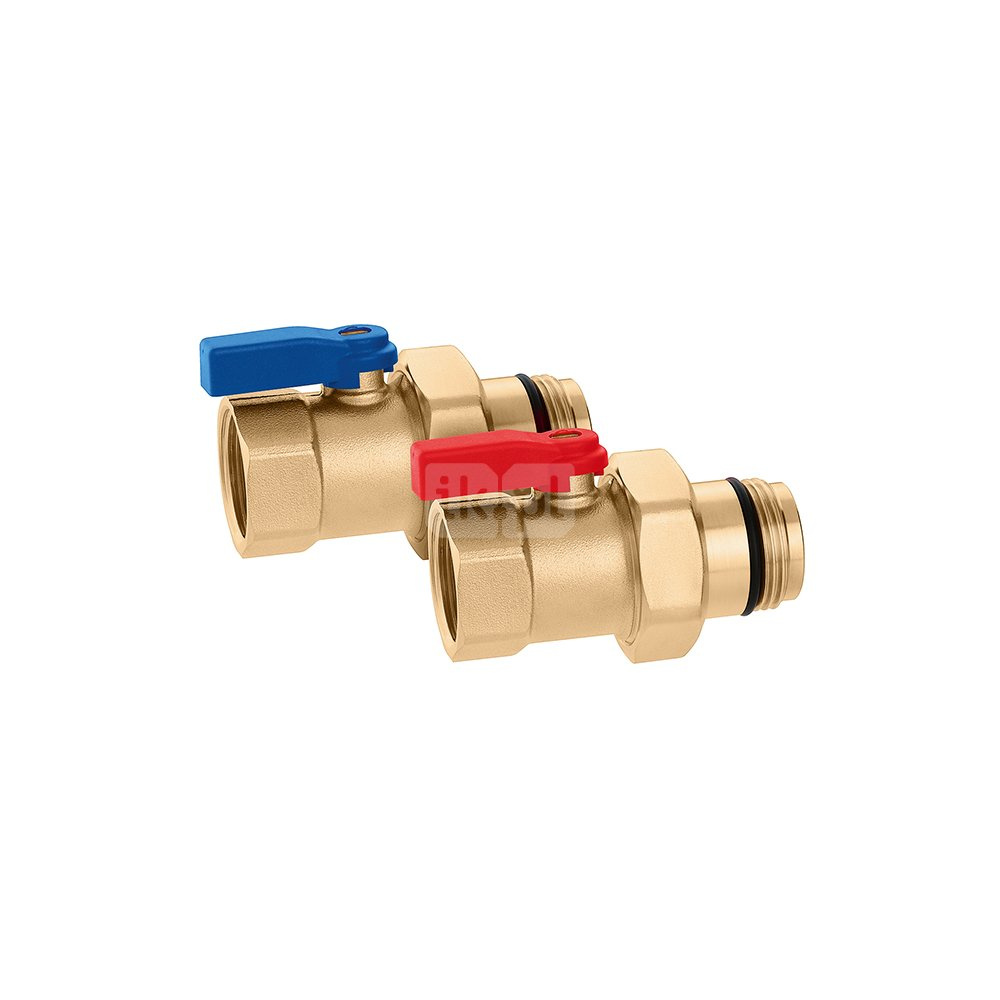 Para kulowych zaworów odcinających z uszczelką O-Ring. Do rozdzielaczy serii 664 i 665. Przyłącze: G 1" (ISO 228-1) GW, wlot, złączka. Przyłącze: G 1" A (ISO 228-1) GZ, wylot, złączka. Maksymalne ciśnienie pracy: 10 bar. Zakres temperatury medium: 5–100 °C.