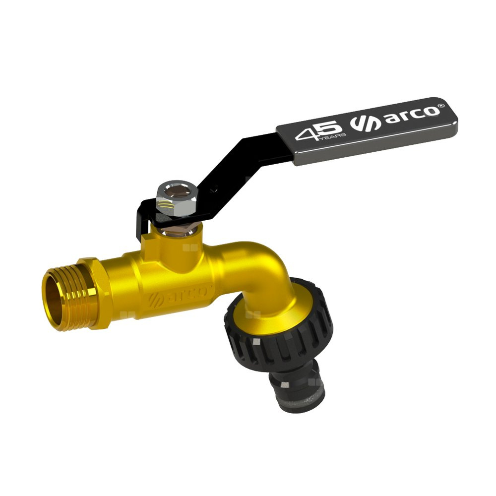 Zawór kulowy ARCO JARDIN czerpalny 1/2'' x 3/4'' GZ+szybkozłączka plastikowa kątowy, uchwyt: dźwignia