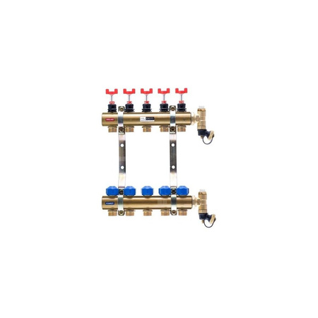 Rozdzielacz do ogrzewania podłogowego QIK BASIC II 4-obieg. mosiądz GW 1'' x GZ 3/4'' + przepływomierz