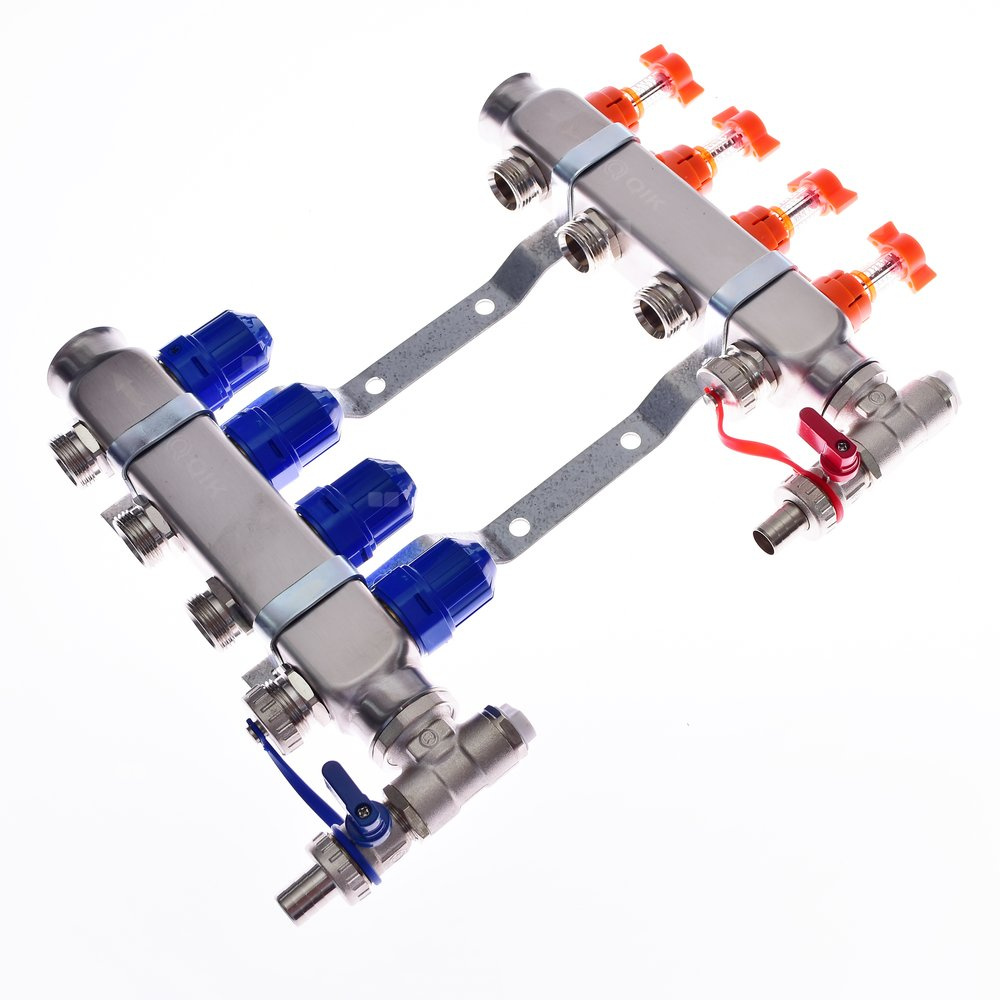 Rozdzielacz do ogrzewania podłogowego QIK Optimo BASIC III - RNZT-2-50 7-obieg. inox GW 1'' x GZ 3/4'' + przepływomierz